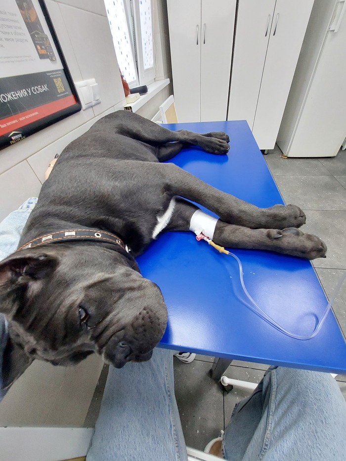 Беру его на руки, 28 кг, он еле поднимает голову ко мне, едем в клинику.