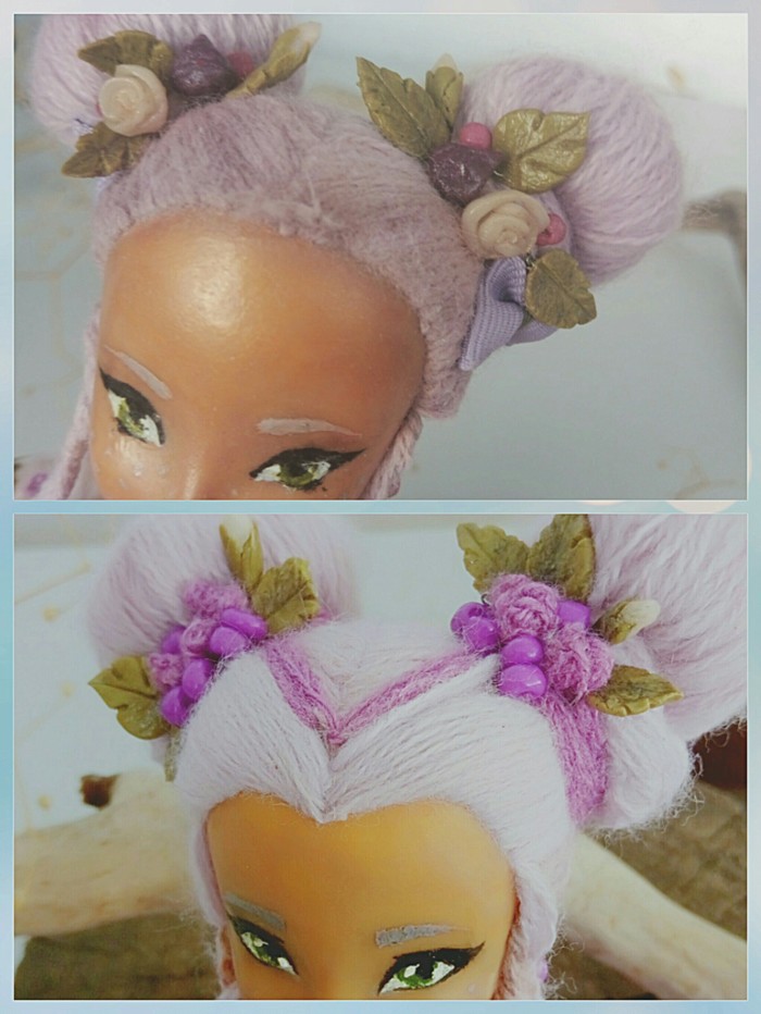 Прошло пара дней и я поняла некоторые свои косяки тут. И главный, что я покрыла лицо обычным лаком, а не матовым. Лицо бликует неестественно. Да и лоб большеват. Решила немного подправить мордашку. Все стерла нарисовала заново и просто не трогала “кожу”. Добавила волос и изменила украшения прически.
