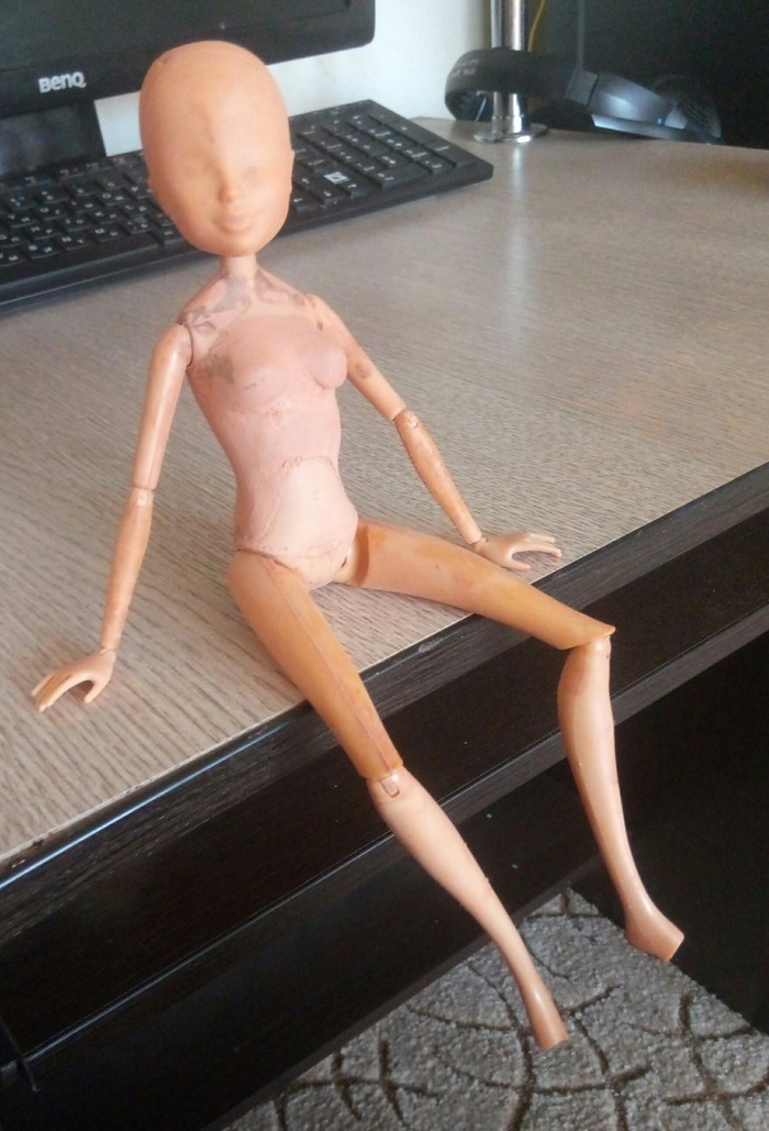 С ООАК я впервые столкнулась еще в 2017м году, и мне очень понравилась идея и чужие реализации. Захотела попробовать для себя что-то сделать. Нашла дешевую шарнирную куклу по такому типу (увы телефон, где есть фото начала, не воскресить)