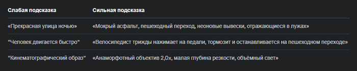 Более длинные и подробные подсказки ограничивают творческий потенциал модели. Она будет стараться следовать вашим указаниям, но не всегда сможет делать это безошибочно.