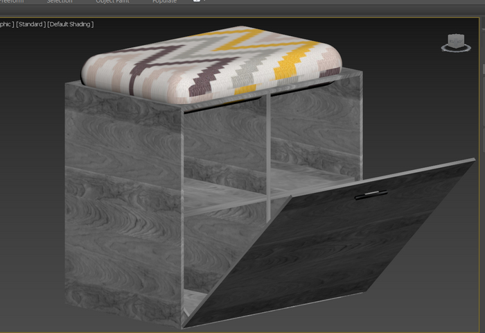 (тут я все еще не умею в нормальный ракурс и текстуры, но кресло уже не из примитивов, а с использованием различных модификаторов и деревянные части - это единая модель).