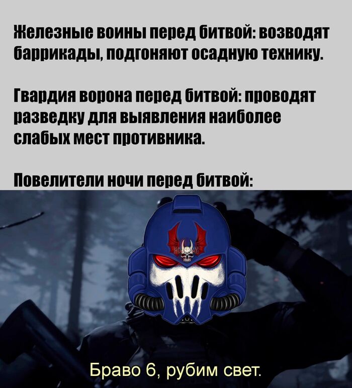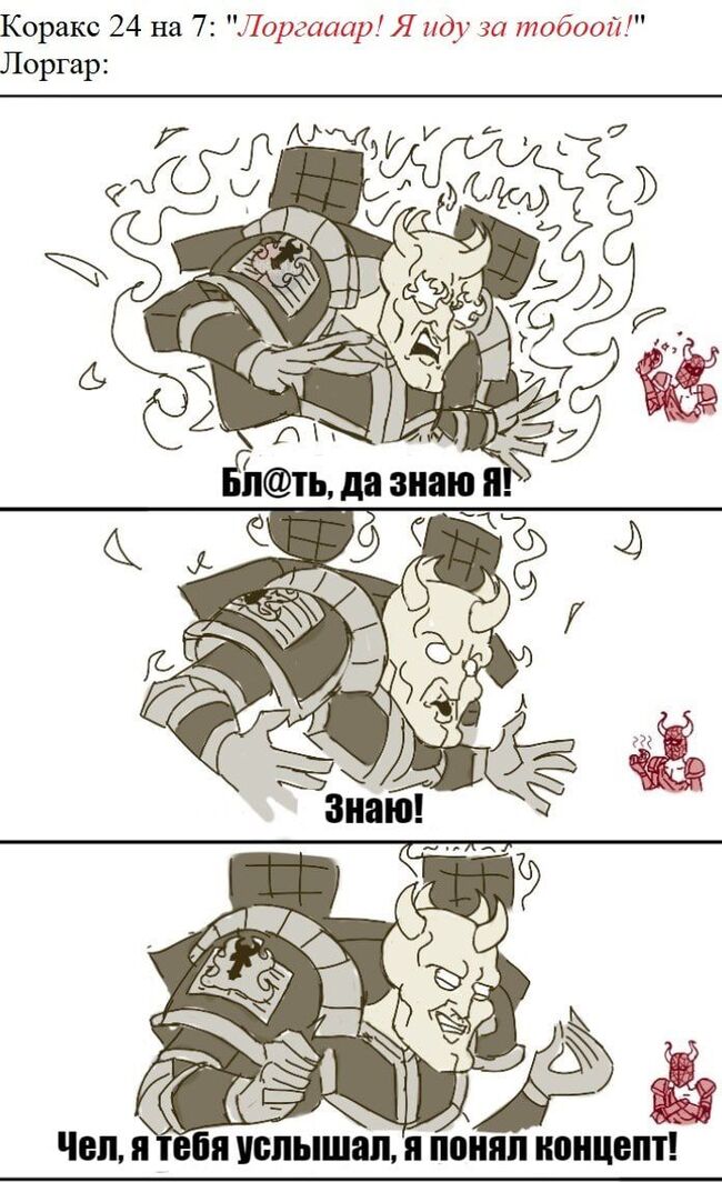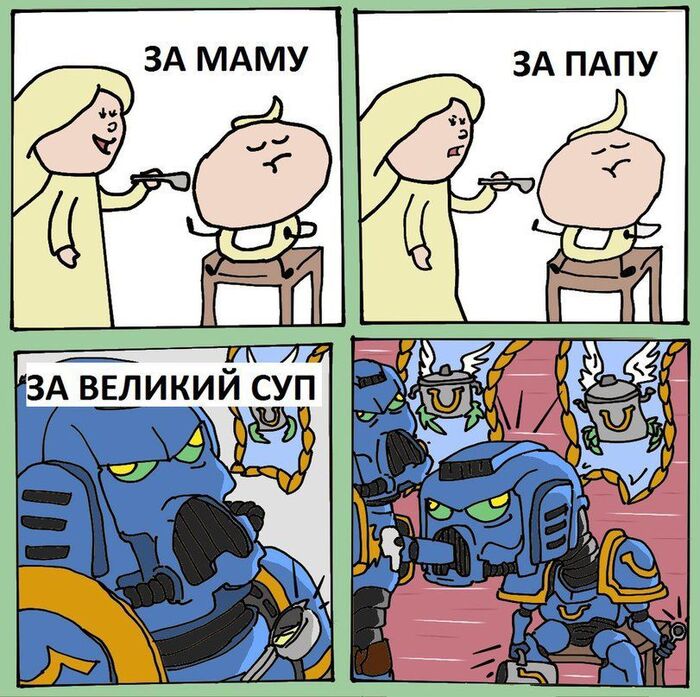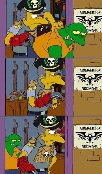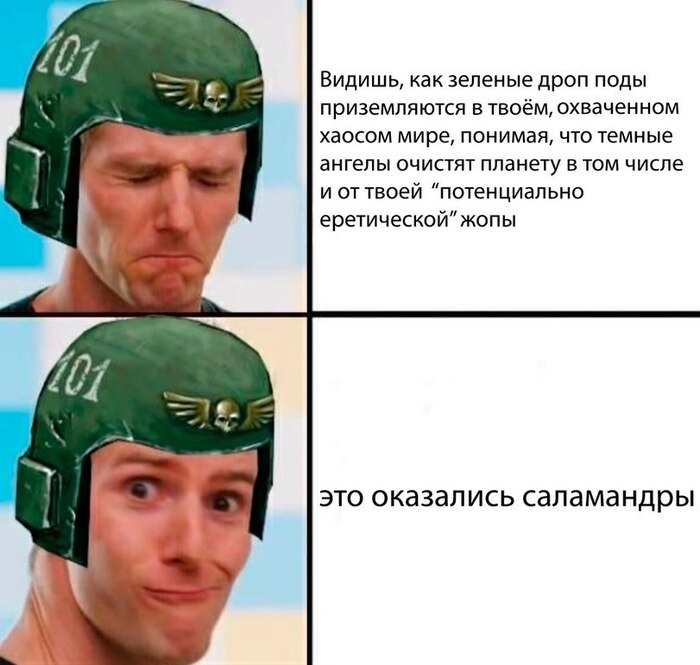 Бунт бушует, постов не видно, для поддержки бойцов, живущих в теге Warhammer 40k, выслана поддержка в виде мемасов, завалявшихся в моём телефоне со времён....да ещё до ериси они там пылью покрывались....