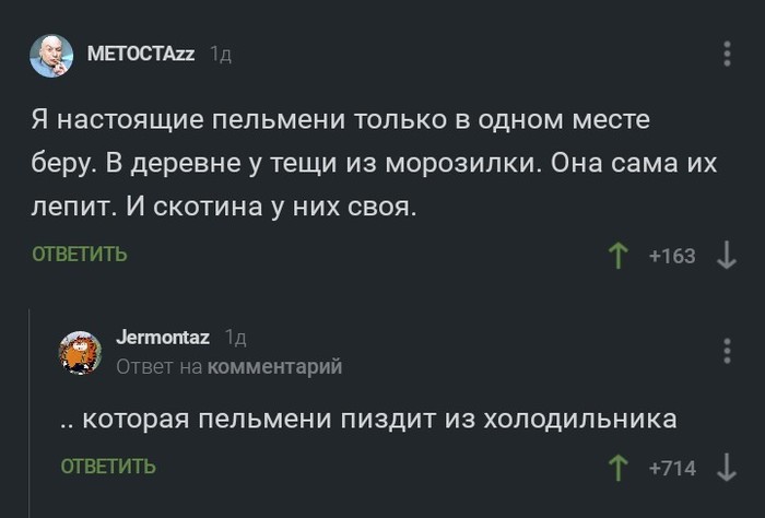 Здравствуйте! В этом посте я бы хотел разобрать явление скриншотов комментариев. Возьмём недавный пост про пельмени