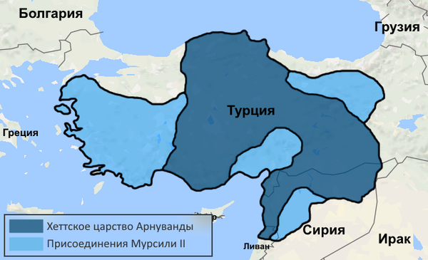 Мурсили II, сын великого царя Суппилулиумы I, привел государство хеттов к наивысшему территориальному расширению. Эпидемия чумы, предшествовавшая правлению Мурсили, жертвой которой пали предшествующие цари Суппилулиума и Арнуванда, несколько ослабила государство, в результате чего отпали окраинные владения, а в западной части Малой Азии ряд царств объединился против Хатти под эгидой царя государства Арцава. На этом фоне продолжалось сопротивление северных народов каска. Тем не менее, пользуясь отвлечением других великих держав, традиционных врагов хеттов – Египта и Митанни, Мурсили сумел быстро подавить восстания, после чего на третьем году правления он разгромил Арцаву, ее царь сбежал в Аххияву (Микены), а ее союзники (в том числе Троя) заключили вассальные договоры с хеттами.