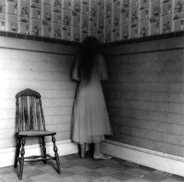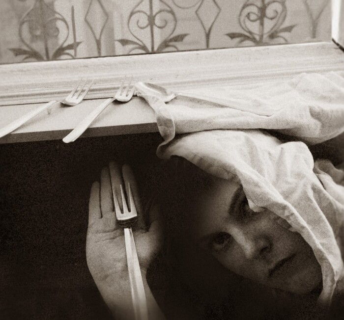 На примере этой фотографии можно уловить все особенности творчества Вудман. На первый взгляд перед нами девушка в легком, воздушном сарафане, немного осевшая на пол. Однако чем дольше смотришь на эту работу, тем больше замечаешь деталей. Первое, что бросается в глаза, – это яркий контраст веселого платья в горошек и обстановки вокруг: облезшей стены и беспорядка на полу. Второе – это расстегнутое, возможно, даже разорванное сбоку платье. Эти детали заставляют смотрящего прочувствовать неопределенность, страх, тревогу – все это сама девушка ощущала на протяжении своего жизненного пути. Оголенные участки тела, которые присутствуют на многих снимках Франчески, подталкивают к размышлениям о потребительском отношении общества к женщинам, их душе, творчеству. Вудман бросает вызов естественности, канонам эстетики в целом, что делает ее снимки уникальными.