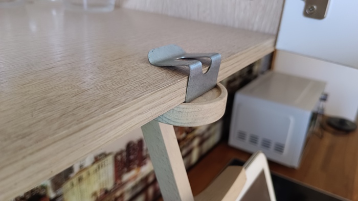 Как вы поняли из названия - это держалка для планшета из массива бука, которую можно крепить на полке.
