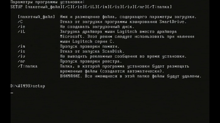 Во-вторых, setup.exe с компакт-диска можно запустить с чёртовой кучей ключей.