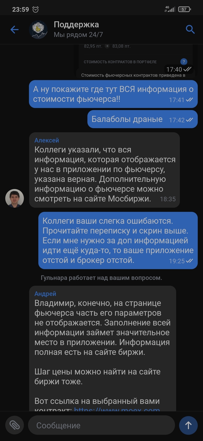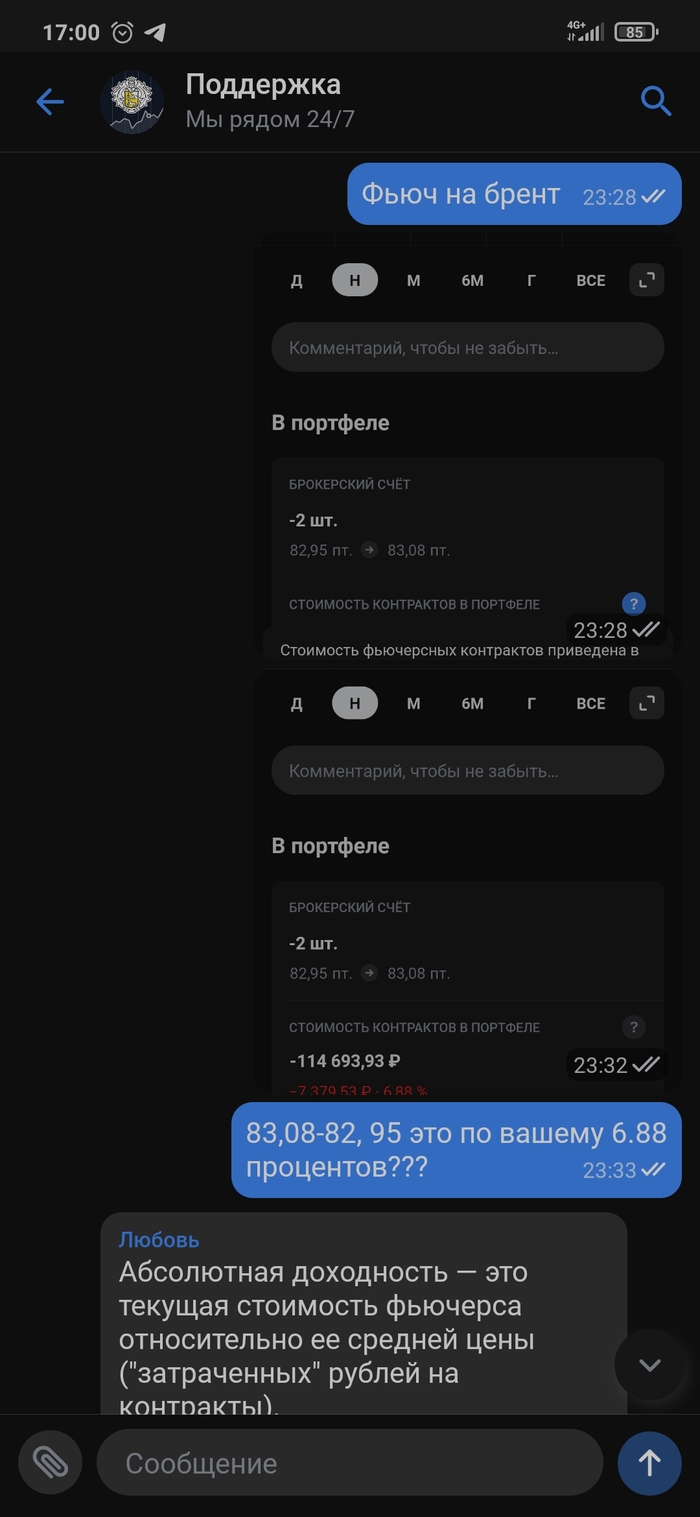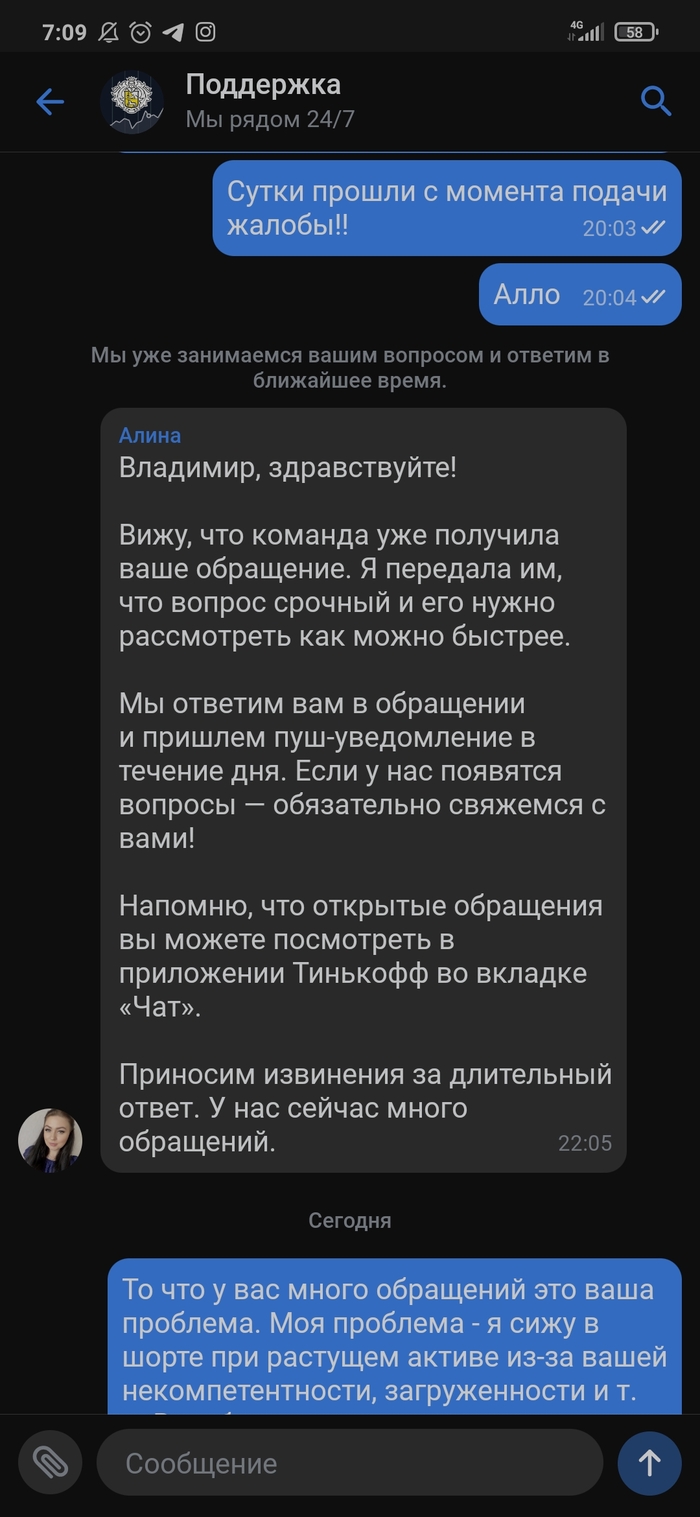 Сутки у Тинькофф ушли на то, чтобы известить меня о загруженности в работе поддержки, за это время доллар подорожал, нефть тоже, я ушёл в ещё более глубокий минус (около -18000р)