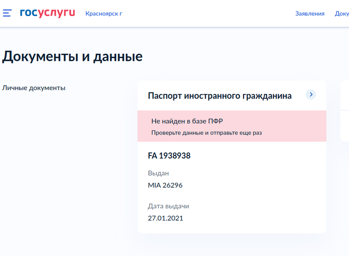 8. ну на сём, собсна и тупик всей ситуёвины... Паспорт иностранного гражданина отсутствует в базе ПФР... Вот ведь странно, правда? (сарказм) Я тоже оч сильно удивился... (сарказм)