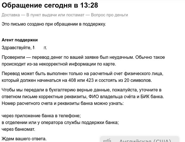 Потеряли посылку... Ладно... Бывает... На странице заказа висит сообщение о получении компенсации и кнопка "ввести данные карты"...