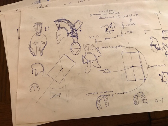 На этом листе я, видимо, рисовал себе рефы для шлемов, которые потом делал сам же прямо в ue4 :)
