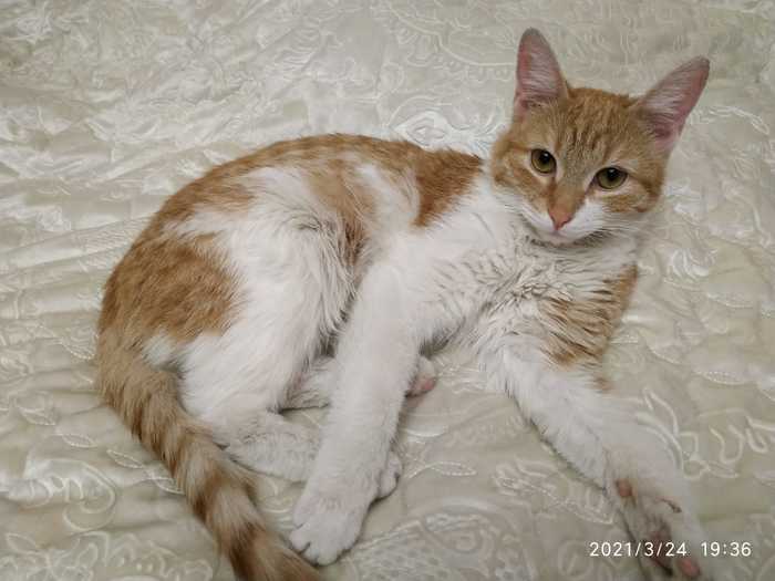 На работе пропадает хороший котейка. Мальчик. Месяца 3. Выжил один из помёта. Игривый, мурчало работает как надо. Смышлёный. Аж руки обмимает, когда гладишь. Окрас рыжий в полоску, лапки"носочки" белые.