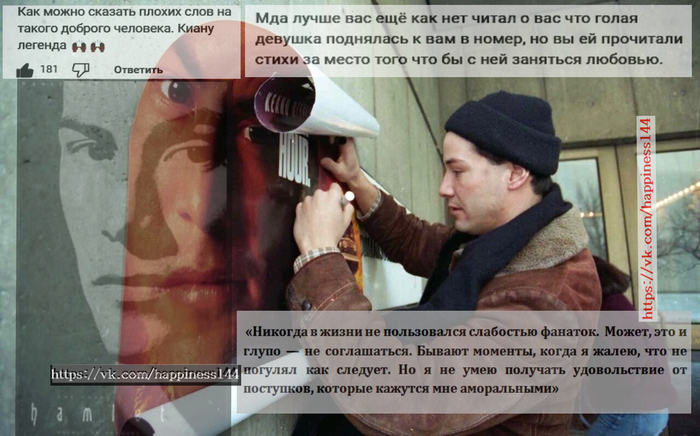 К счастью есть зрители которые считают это кино лучшей версией «Дракулы», пусть субъективно и только из-за присутствующих там актеров. О высказываниях критиков :японская мудрость гласит - Чрезмерная честность граничит с глупостью (факт из психологии - экстремальная откровенность), и признак нескольких расстройств личности. А отсутствие деликатности - уродливо. Позже все недовольные и обиженные забрали назад свои слова, оправдав свою критику и подбадривая Киану – «Плохой опыт, тоже опыт», но из СМИ уже слов не вычеркнешь: