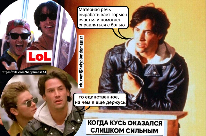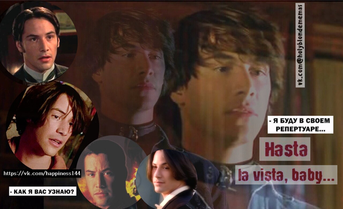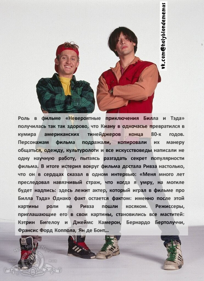 Укладка у героев (Джонатан Харкер и Тед Логан) почти идентичная, перескакивать из таких полярных образов трудно. Известно что съемки кино привязаны к чему угодно - времени, наличию реквизита, аренде площадок и оборудованию, подстройкой к графикам звезд категории А (которой Киану Ривз еще не являлся) и тд, но только не к удобству актеров. Никого не волнует что кто не выспался, не успевает по своим делам, нет настроения или просто сил. Команда «мотор» звучит в любое время суток. Это работа с ненормированным графиком, которая требует неограниченных физических и психоэмоциональных ресурсов. И они могут закончиться. Известно так же что в это время Киану был задействован еще в трех проектах и защищал свою «плохую» игру тем, что после нескольких других постановок был физически истощен (подожди, впереди подготовка к роли Будды и в «Скорости»), и оправдывал своего «тормознутого» Джонатана Харкера, которого нещадно критиковали, усталостью. Но сначала был этот марафон между съемочными площадками..