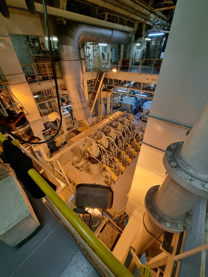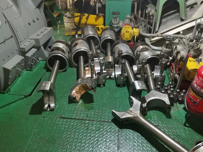 Народ меняет заклинивший выхлопной клапан главного. MAN B&W 6S50MC-C старенький.
