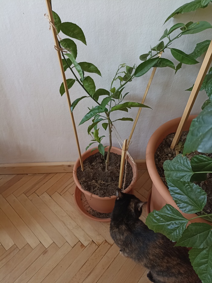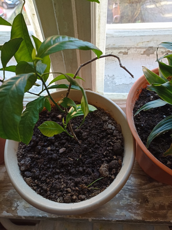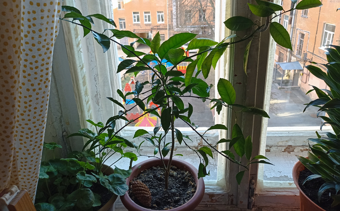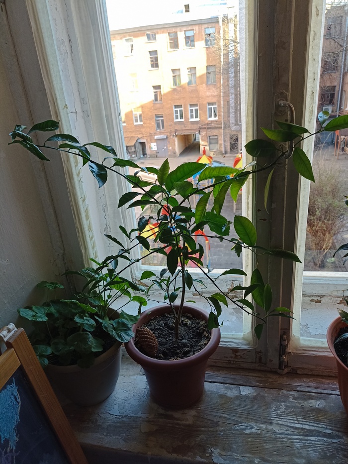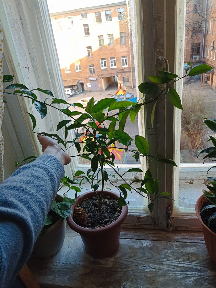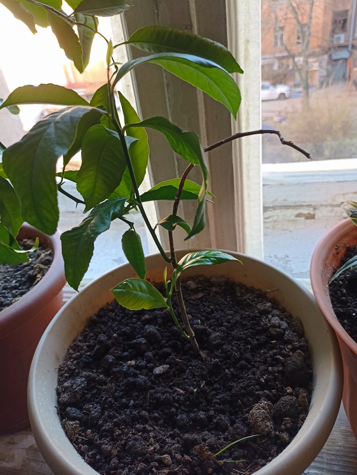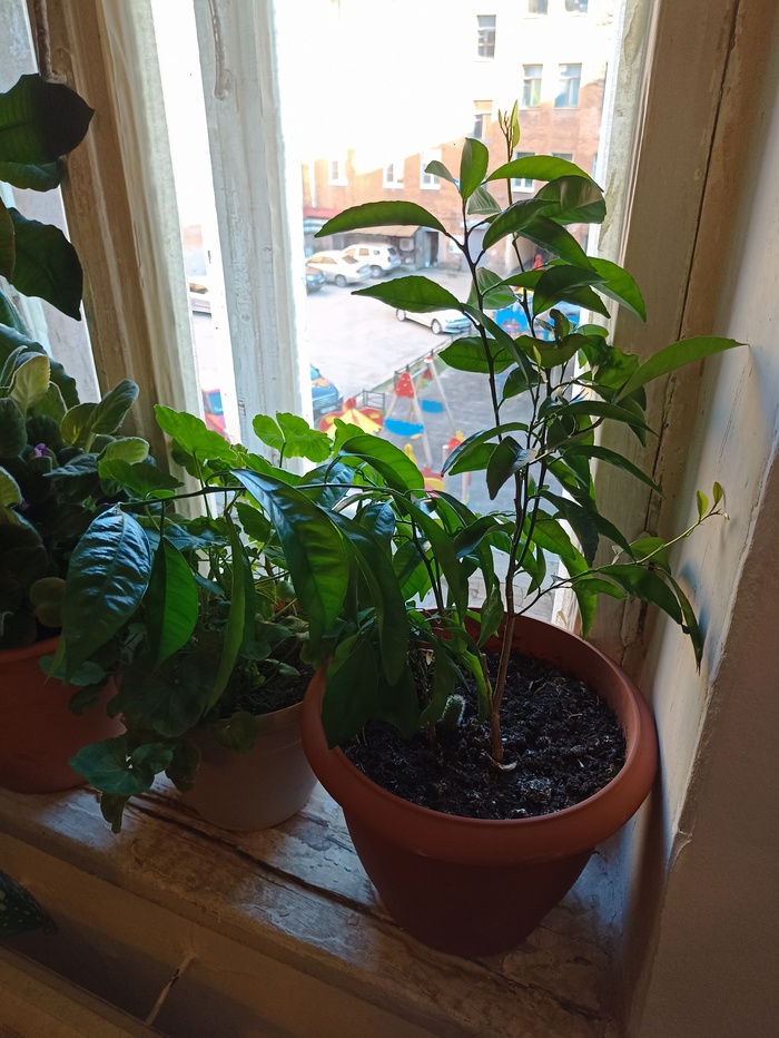 Начну с предыстории. Когда старшей дочке было годика три (то есть около 7 лет назад), мы с супругой "по-приколу" посадили косточки цитрусовых (Мандарин? Апельсин? Лимон? А я и не вспомню уже). Ну то есть: "Папа, а это что такое твердое?" - "А это косточка. Если еë посадить - вырастет дерево с мандаринами (Или апельсинами. Или лимонами)" - "Ух ты, правда? Давай посадим, папа?" - "А давай, почему бы и нет". Супруга растения любит, горшок и земля нашлись быстро. Посадили всë в один горшок, стали ждать. Проклюнулись, выросли. Кто рос быстрее - отсадили раньше, кто помедленнее - тех попозже. Двое до сих пор в одном горшке ютятся.