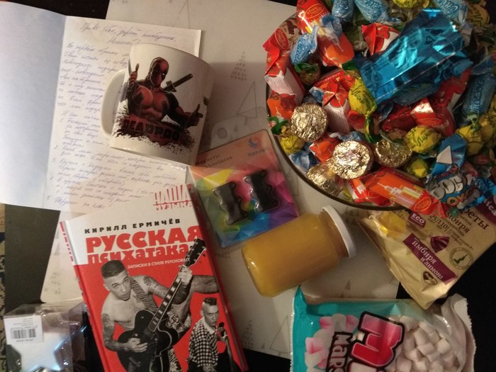 Далее великолепная кружка с Дедпулом (один из немногих марвеловских персонажей, которые мне доставляют), приправленная мёдом и вкусняхами. Зефирки, кстати, была мысль пожарить как-нибудь на природе, пока не увидел изображение кружки, да, кофе с зефирками это то, что я люблю.
