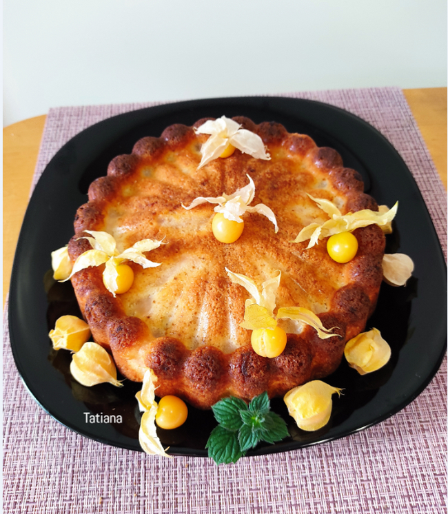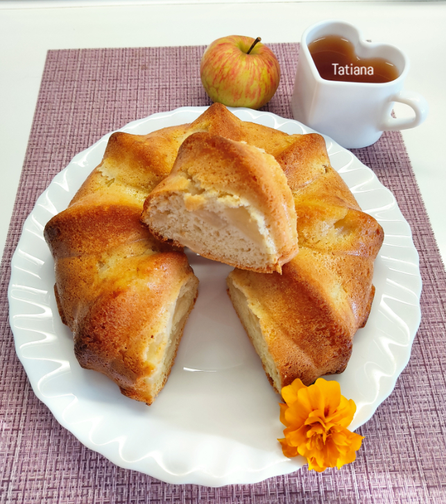 Обычное тесто для шарлотки: 3 яйца взбить с 1 стаканом сахара, чтобы масса побелела и увеличилась в объеме. Добавить 1 стакан просеянной муки, 1 чайн. ложку разрыхлителя. Тесто перемешать лопаткой движениями снизу вверх, чтобы оно насытилось кислородом. Не взбивать! Добавить порезанные груши или яблоки, перемешать. Поставить форму в уже разогретую духовку.180 град 30-40 минут.
