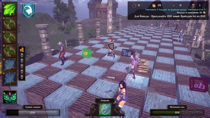 Психические атаки. Когда-то давно кто-то из читателей предъявил мне претензию в чем сложность игры если враги просто стоят на месте. Я уже тогда понимал, что подвижные фигуры Орды это очень сложное испытание для игроков. Сейчас найдено решение изредка в пустошах вы встречаете небольшие группы вражеских воинов, которые постоянно движутся. У движения фигур есть некоторые закономерности, но победить в таких миссиях не очень просто и они достаточно короткие нужно порвать всего лишь 150 линий вражеского сопротивления.