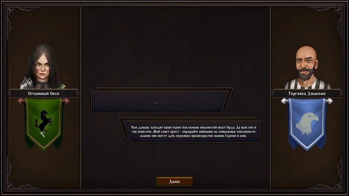 Так они еще и дают необходимую передышку между сражениями своими "ненапряжными" диалогами. Какие-то диалоги встречаются один раз в кампании, а какие то могут повторяться (они короче). Каждое прохождение уникально и порядок сюжетных диалогов формируется под воздействием массы обстоятельств.