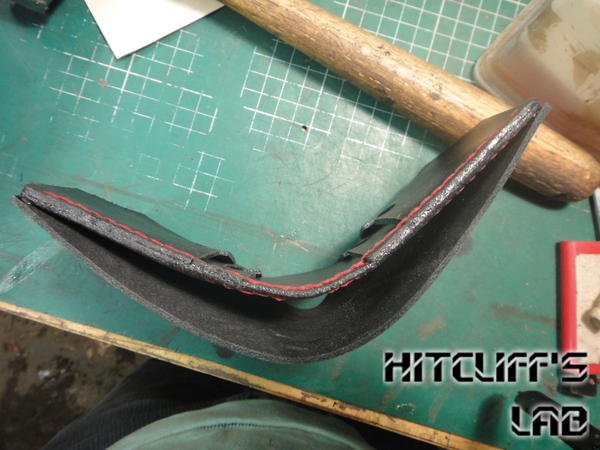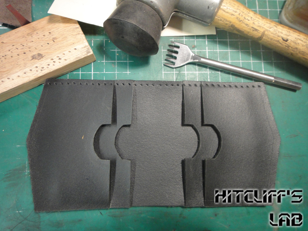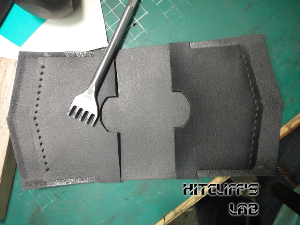 Приклеиваем нижние кармашки и пробиваем отверстие для шва