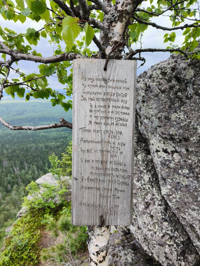 На одном из скальных останцев можно разыскать «след великана». Это углубление, образовавшееся в результате выветривания. По форме напоминает огромный отпечаток левой ноги человека. Возможно, естественная форма выветривания в древности была частично обработана человеком для придания большей схожести с человеческим следом. Предания приписывают этот след богатырю Полюду. Встретилась нам также табличка со стихами.