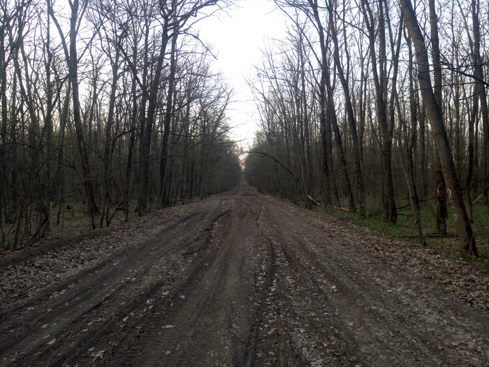 Время неумолимо двигалось вперед, намного быстрее, чем хотелось бы. Я ехал, шел, местами переносил/перетаскивал велосипед, постоянно очищая грязь из под крыльев. Сумерки наползали, все больше и больше. В городе сумерки ощущаются совершенно по другому, все видно довольно хорошо и не вызывает смущения при езде на велосипеде. В лесу, понятное дело, все немного иначе. Даже в слабых сумерках лес становится намного темнее, а уж когда на улице начинает темнеть, в лесу начинается просто ночь. Никогда ранее я по ночам в лесу не был и не знал, как я себя поведу. Когда вокруг стемнело окончательно, мне оставалось пройти еще половину лесного пути, скорость моя заметно снизилась, ибо я уже давно спешился, за невозможностью ехать, колеса моментально забивались и блокировались. Я просто шел, выбирая максимально твердые участки поверхности на ощупь и таща за собой велосипед. Единственное, что просматривалось в бездонной темноте чащи - это дорога, она выделялась четким более светлым контуром, что позволяло не сбиваться и придерживаться ее.