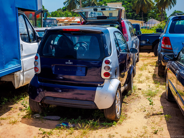 В Гамбии всего около 35000 автомобилей, из них около 21000 — легковушек, поэтому количество покупателей сильно ограничено. Основной «поставщик» бэушных автомобилей — Бельгия. Автомобили покупаются в Европе, затем плывут в Банжул из порта Антверпена. Поставка одной машины обходится в 27 000 даласи (630 долларов). Плюс налоги и взятки, насколько я понял со слов Самбы, составляющие от 14 до 40 процентов стоимости самого автомобиля.