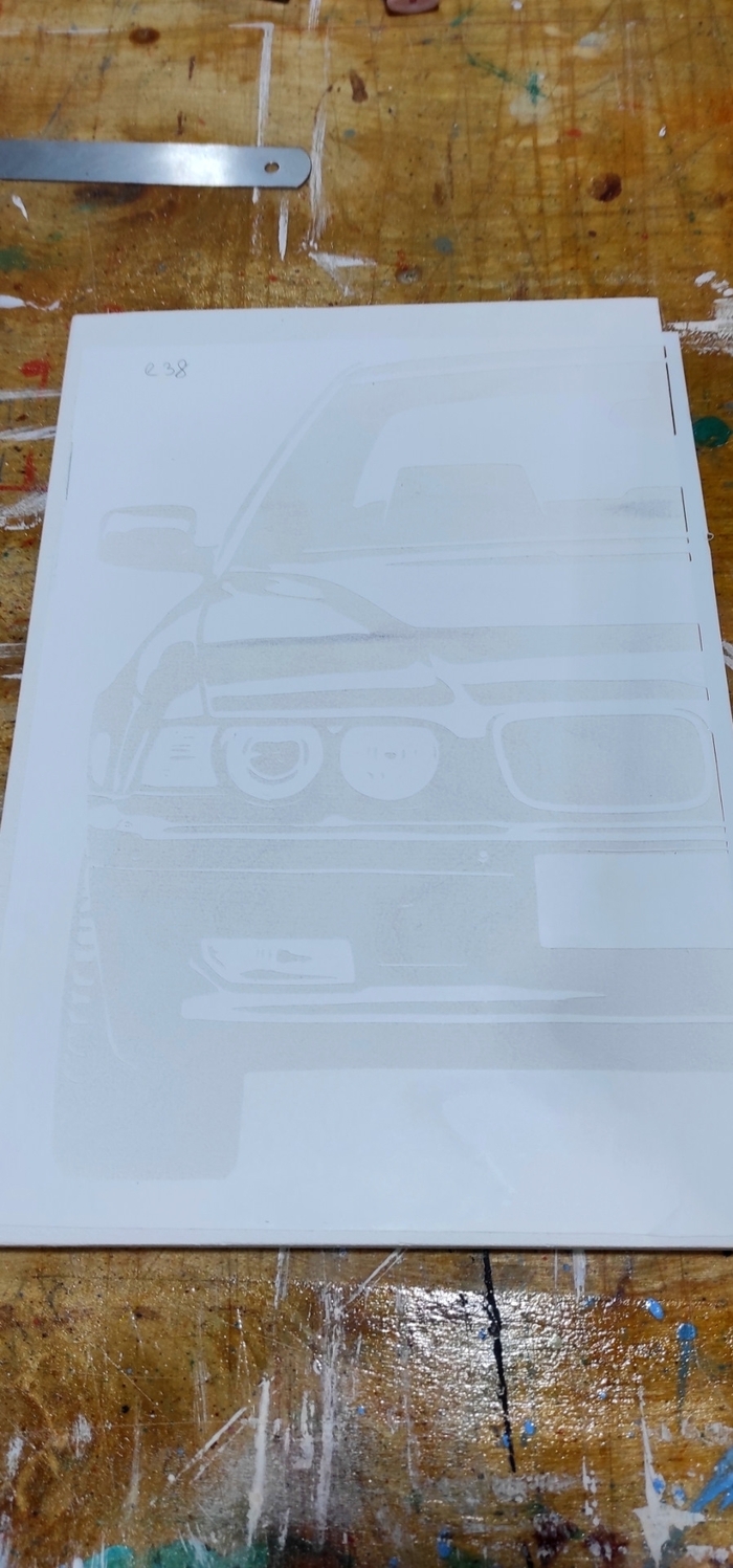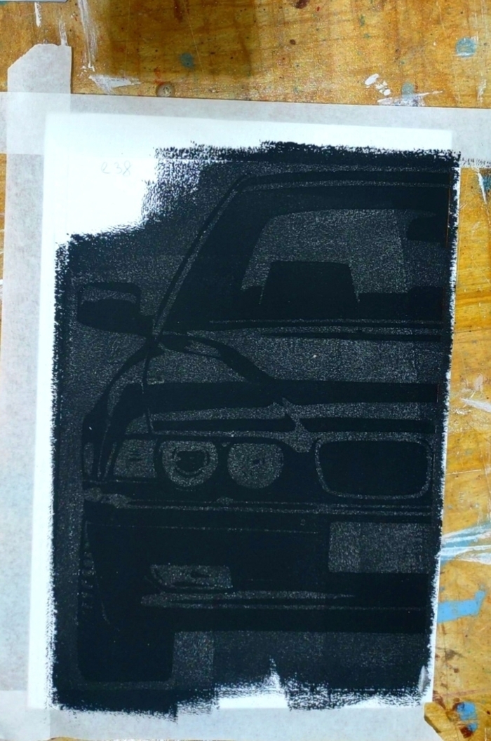 Возможно я сошёл с ума, но у меня есть цель, сделать 365 изделий за год лично для себя, по одному в день, на стены в мастерской. Если сделаю раньше — лучше. Пришёл в итоге я к тому что рисую машины. (Через трафареты собственного производства конечно, но это ведь тоже рисование)