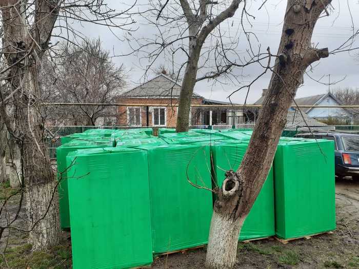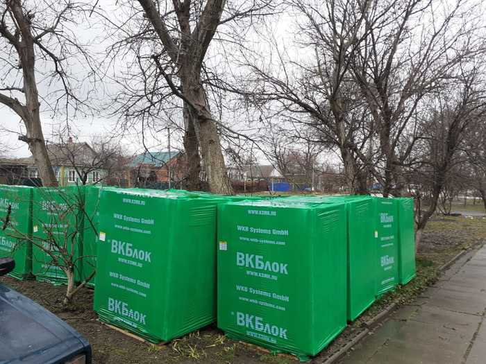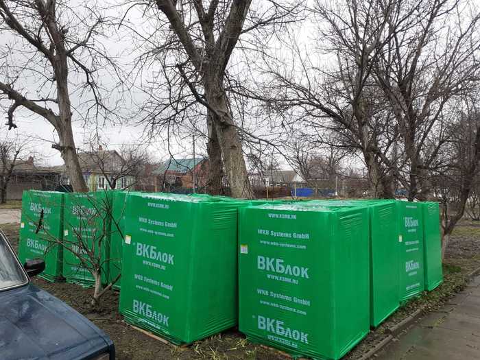 Фото делал под дождём. Ещё две паллеты во дворе с U блоками.
