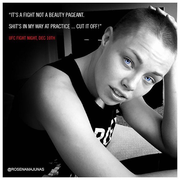 Одна из двух блондинок хедлайнеров турнира UFC Fight Night: Namajunas vs VanZant, а именно Роуз Намаюнас решила не участвовать в бьюти-гонке и постриглась на лысо. Фото себя побритой она выложила в инстаграм, добавив пафосную надпись: "Это бой, а не конкурс красоты. Что-то мешает в моей подготовке к бою: отрежь это".