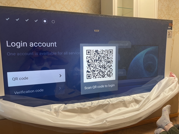 Телевизор предназначен дя Китайского рынка, в связи с чем для его активации нужен Китайский номер телефона, на который приходит смс с кодом. Я активировал через посредника, приобретавшего тв.