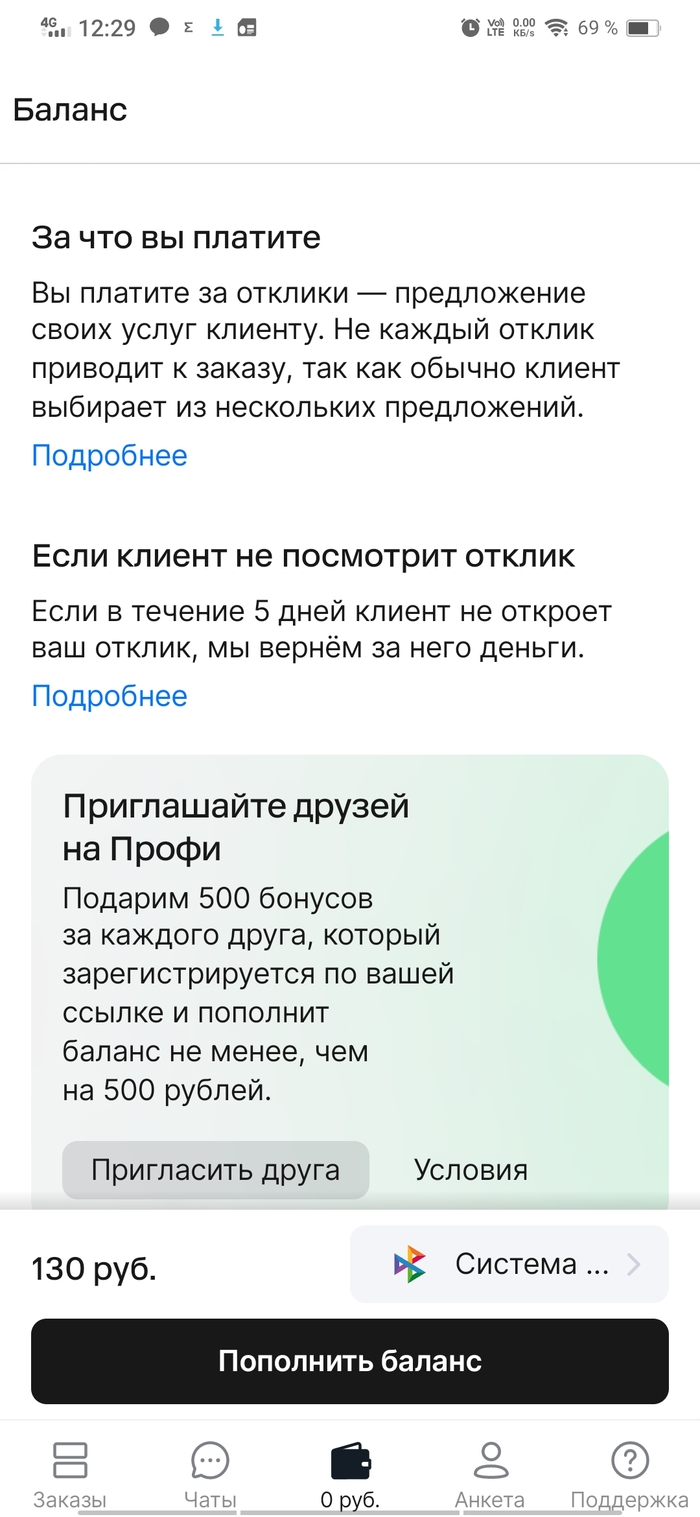 Если хочешь работать, эти поля желательно максимально подробно заполнить. Ведь заказчики такие требовательные, абы кого в свой дом не пустят (и это правильно). А теперь самое интересное. Деньги. Чтобы взять заказ, а точнее получить возможность просто написать заказчику (и далеко не факт, что он будет с тобой общаться, а если будет, то, опять таки, не факт что заказ ты возьмёшь), нужно заплатить деньги или согласиться на комиссию, которую ты должен будешь заплатить после выполнения (плюс - минус 10% если заказчик разместил стоимость, если нет, там вообще цирк).