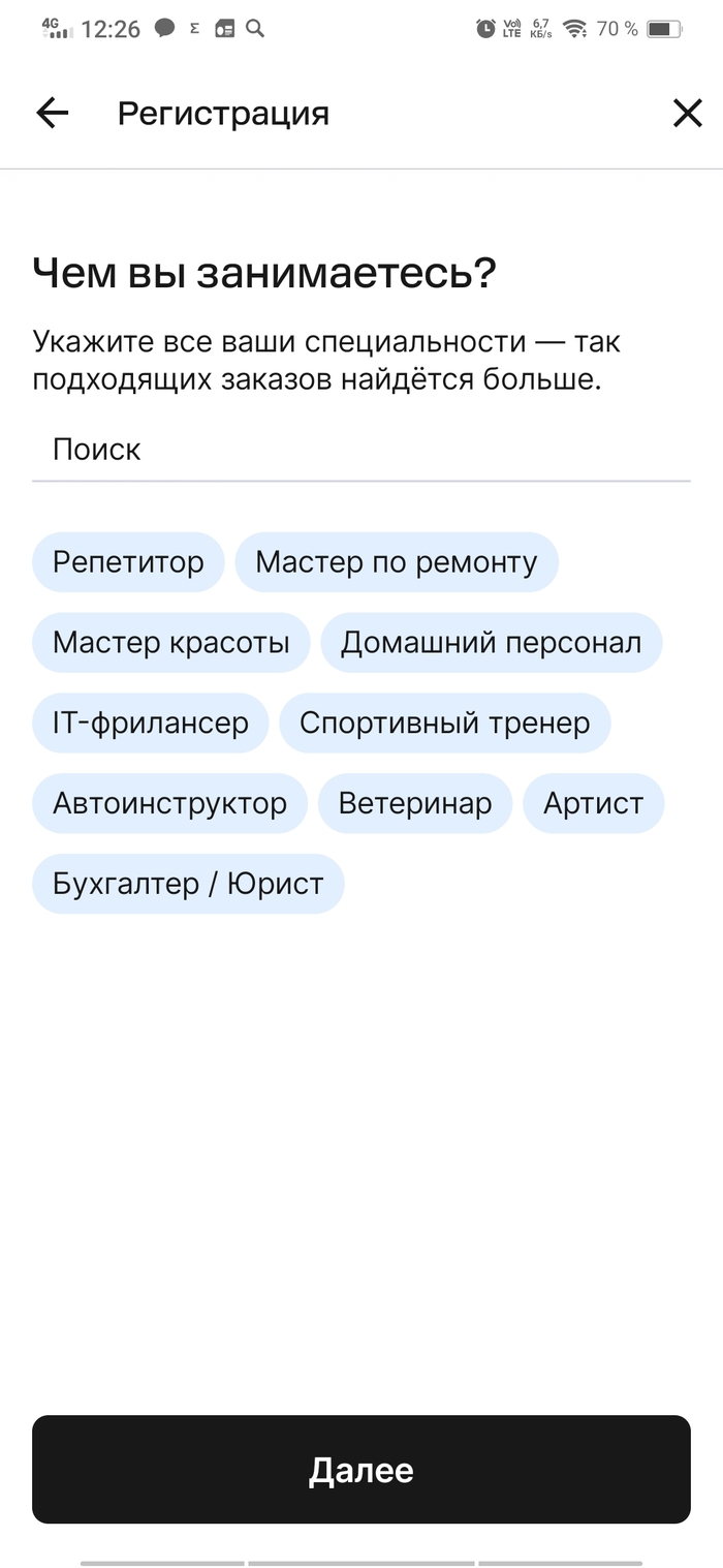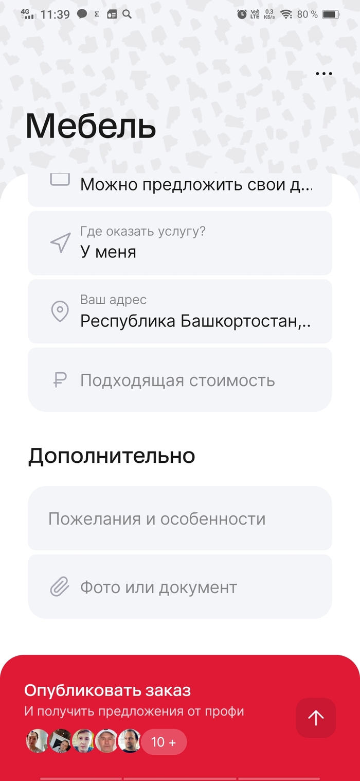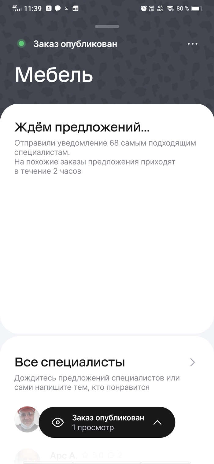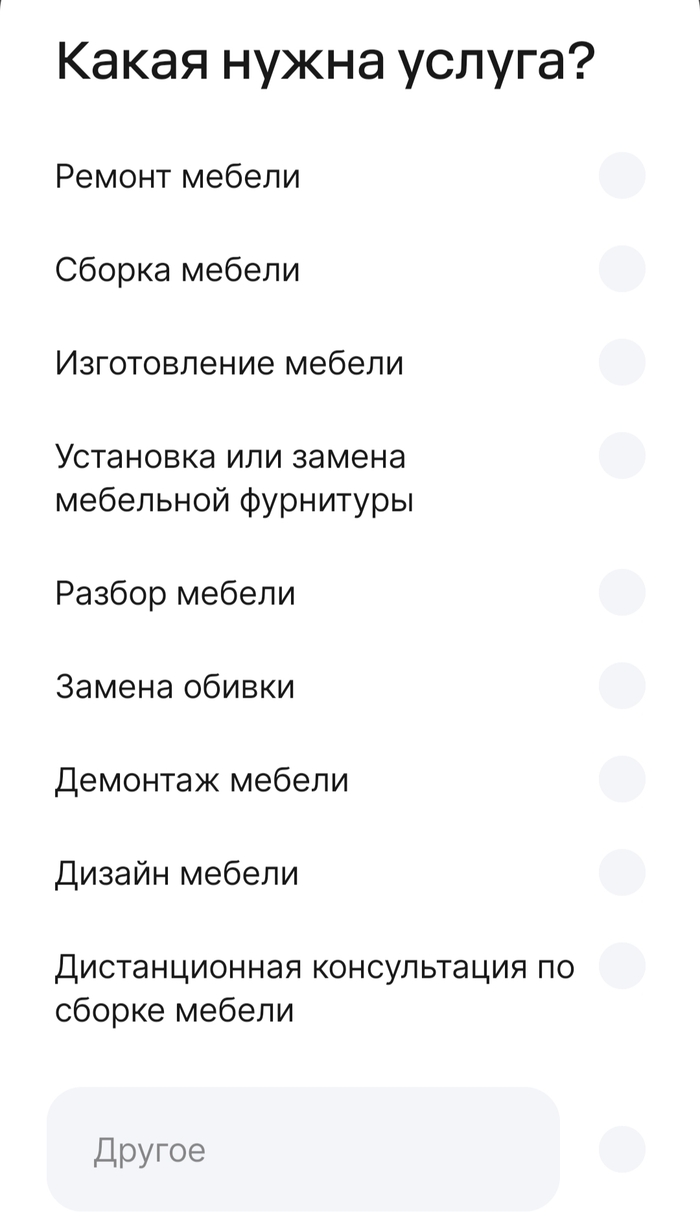 Жмакаем в поле "специалист или услуга", пишем там запрос. В моем случае мебель. Я же мебельщик.