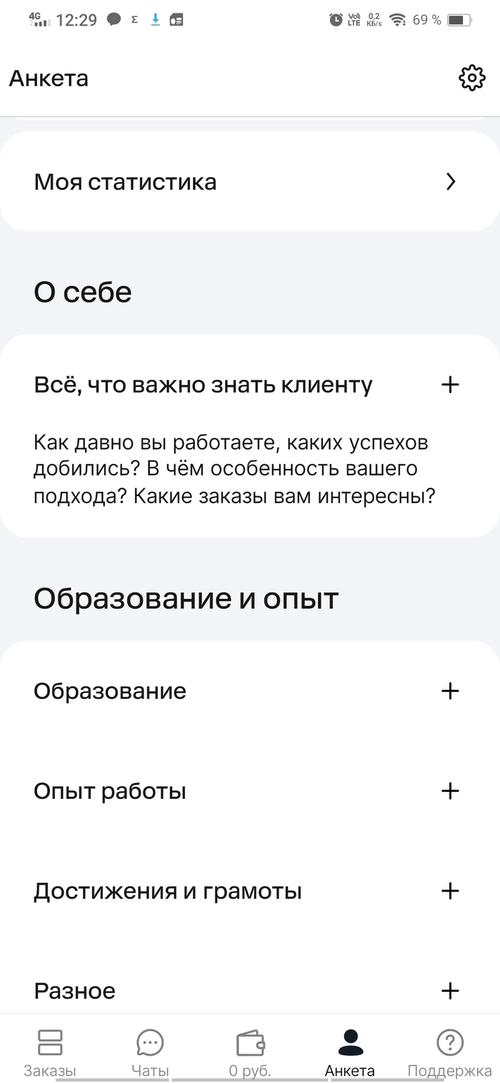 Скачать и установить приложение - дело минутное. Авторизация через телефон, ВК или Гугл. Тут тоже ничего сложного. Можно добавить фото и вуаля - я новый заказчик. Вот так выглядит главный экран: