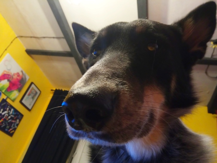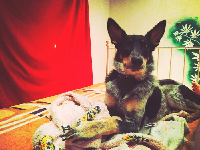 В целом - невероятно позитивный, умный и добрый пес невероятной окраски) Очень легок и подвижен, невероятно прыгуч. А еще обожает пиво, но про это отдельная история))