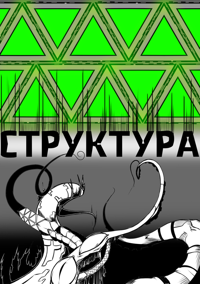 Вкратце о сути комикса "Структура": некое старое (даже древнее) существо пытается спокойно жить в 22ХХ годах на нашей планете. Вокруг - "высокие технологии, херовая жизнь", корпорации, импланты и прочие радости киберпанка.