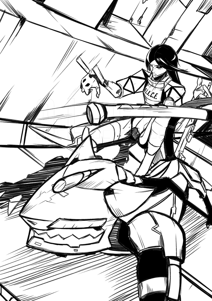 Металлический рык-скрип заставил курьера еще сильней сжаться под платформой. Боевой робот «Чешир», размером с крупную собаку и имеющий в себе черты и этих животных, и их антиподов-кошек, были быстрыми, ловкими и могли догнать даже байк.