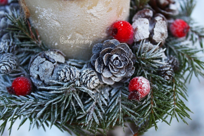 3. Чтобы сделать ёлочку немного заснеженной, я тонировала белой акриловой краской все шишки и веточки, думаю во всех новогодних поделках это не помешает.