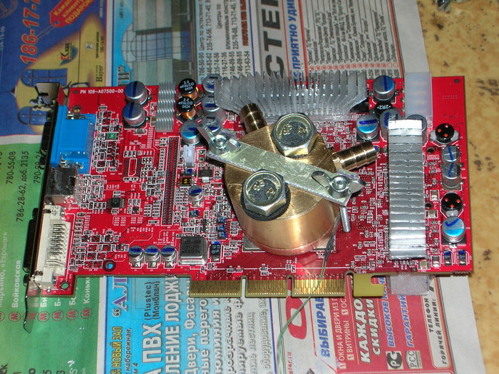Посидел, подумал. Решился на бредовую тему. Спаять их медных трубок по контуру систему охлаждения для памяти видеокарты. Много лет спустя сижу, смотрю фотки понимаю, что это было чистой воды авантюризм. А тогда молодой и решительный был. Таким все по плечу. А щас по *ую.