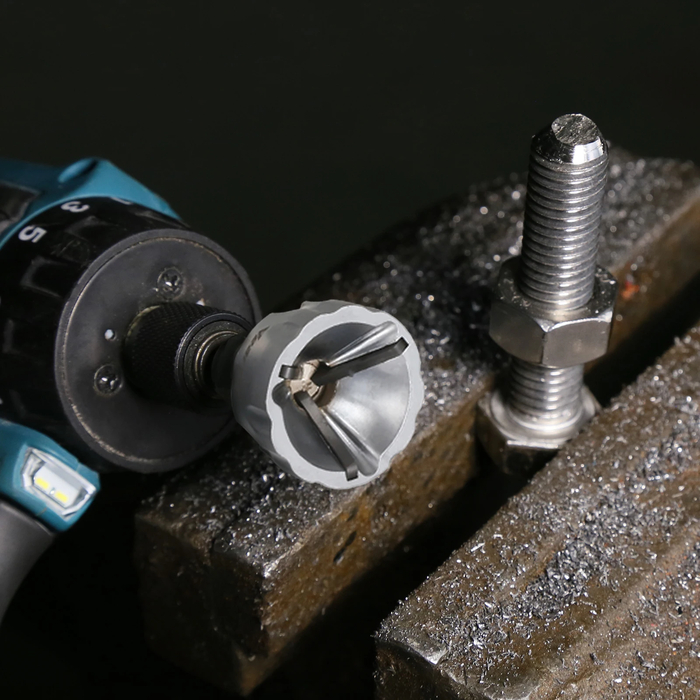 Высококачественный инструмент из карбида вольфрама для удаления заусенцев на болтах диаметром от 3 до 19 мм. Шестигранный хвостовик 1/4 дюйма (6,35 мм) обеспечивает надежное крепление в дрели или шуруповерте. Общая длина зенкера составляет 51 мм.