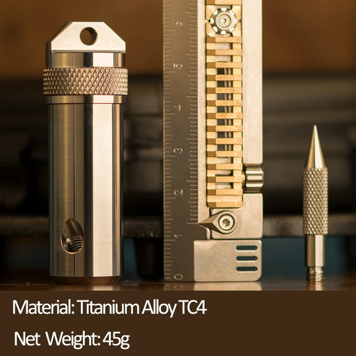 Многофункциональный инструмент из титанового сплава 4 класса, который сочетает в себе прочные съемные крючки и герметичную капсулу для их хранения. Благодаря высокой прочности (выдерживает вес до 60 кг) и коррозионной стойкости, этот инструмент идеально подходит для использования в различных условиях.