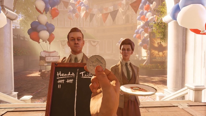 Игра вышла и сюжет захлестнул меня с головой, я внимательно слушал, запоминал каждую мелочь, строил догадки и промахивался. Информации давали много и уложить ее в голове даже стараясь – дело непростое. Контраст чуть ли не райских декораций и ужасов творящихся в Колумбии натурально бил по мозгам. Элизабет умиляла и вызывала жалость одновременно, а играть за не очень хорошего человека было…немного стыдно, что ли. Проходил кошачьими порциями, аккуратно складывая все, что получал. Становилось все интереснее.