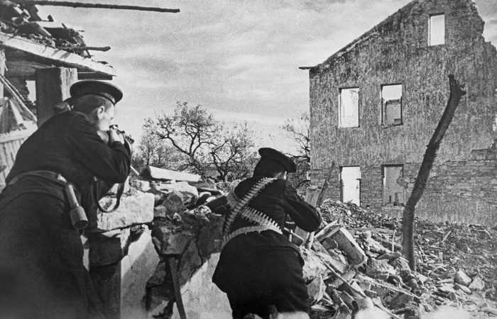 В новое наступление перешло уже не менее батальона под прикрытием четырех 75-мм пушек. Пулеметчики десантников сконцентрировали огонь на орудийной прислуге, расчеты ПТР выводили из строя сами орудия. Немцы с трех сторон приблизились к свинарнику, конторе элеватора, сарайчику Дермановского, и тогда в бой вступила уже основная группа. Эффект был ошеломляющим: бросая десятки убитых и раненых немцы отступили. У моряков только добавился еще один легкораненый.