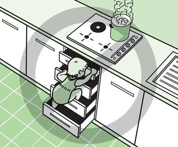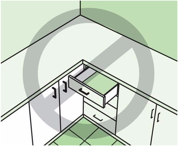 Не устанавливайте нижние шкафы с ящиками близко к плите — маленькие дети могут добраться по ним до плиты и обжечься.