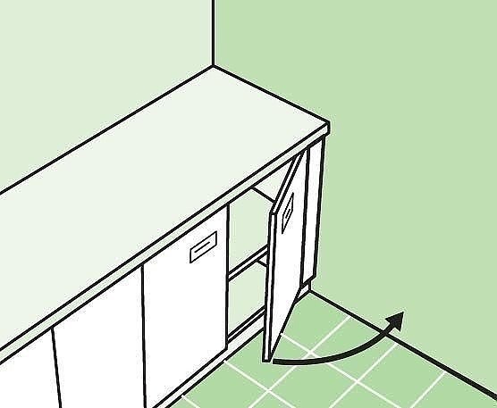 Оставьте пространство между стеной и последним ящиком (навесным или напольным), чтобы с легкостью открывать дверцы. Это пространство будет заполнено проводами или трубами.