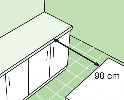 Оставьте пространство не менее 90 см между кухней и обеденным столом для свободного перемещения.