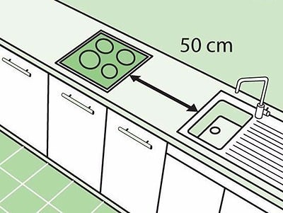 Запланируйте свободное пространство между плитой и мойкой (мин 50 см).