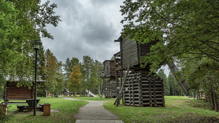 Пара слов о музее «Малые Корелы». Для начала: они совсем не малые. Понятно, что придираться к топонимике — ребячество, но музейный комплекс поражает как своими размерами, так и количеством зданий-экспонатов. Людей мало, оттого атмосфера близка к посещению подобных объектов в их естественной среде. В этом и минус: чем меньше туристов, тем худее зарплатный фонд музея, и значительная часть домиков открывается посменно, банально из-за недостатка сотрудников. А без присмотра старинные деревянные постройки не оставляют.
