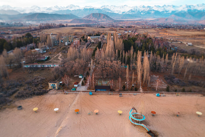 Здесь, на берегу Иссык-Куля время словно остановилось: старые вывески и расписанные вручную стенды среди тенистых аллей, остатки водных горок, скрипучий старый пирс и забытый всеми кинотеатр — это всё, что осталось от прошлой эпохи в бывшей всесоюзной здравнице.